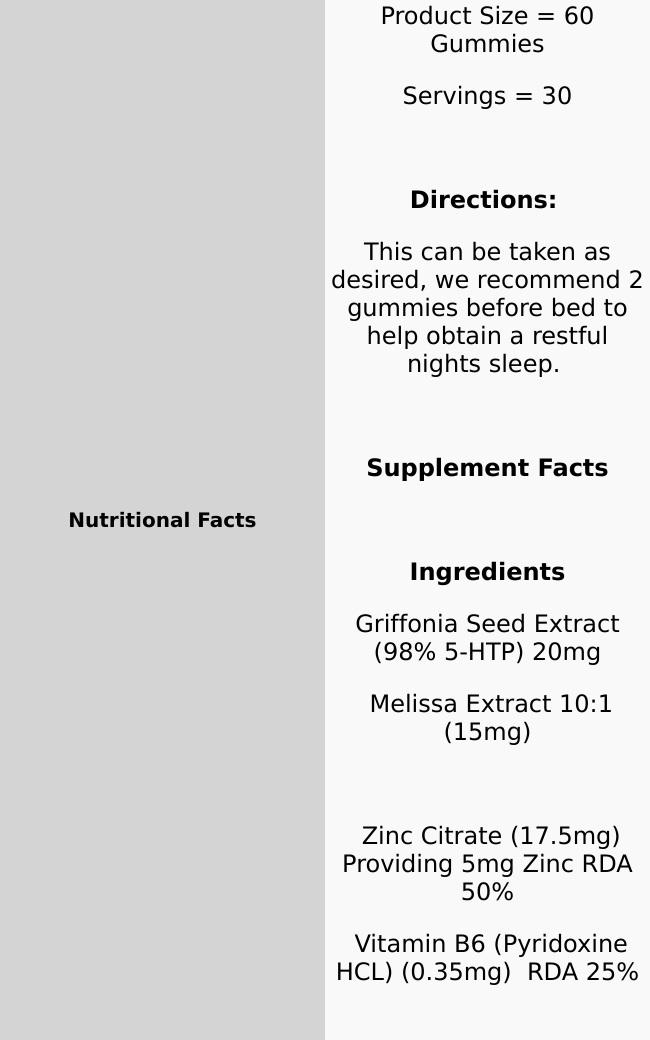 Warrior Sleep Gummies are expertly formulated with ingredients combined to support a great nights sleep. Great doses of 5-HTP, Zinc and Lemon Balm, all packed into one delicious sugar-free gummy!
