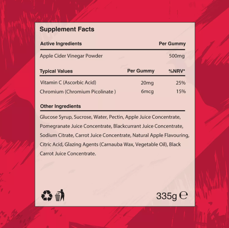 - TASTE – At Warrior, we've crafted an Apple Cider Vinegar gummy that is both delicious and free from the typical bitter taste Infused with Pomegranate and Blackcurrant Juice, these gummies have a naturally sweet flavour