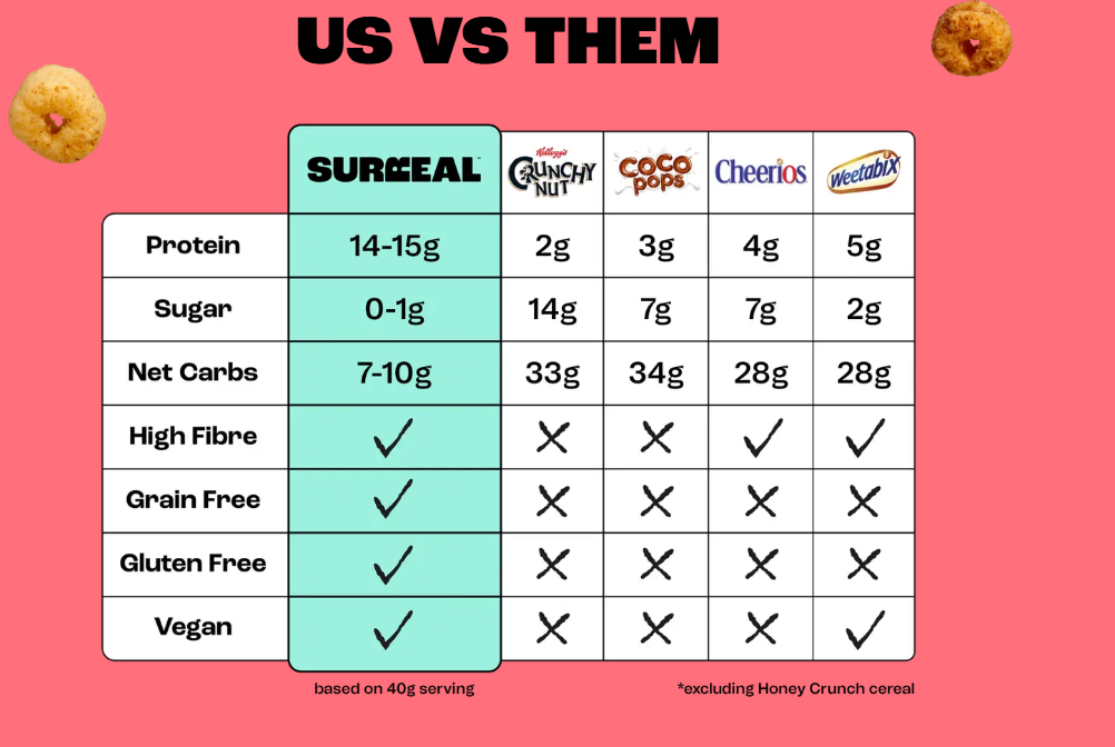 Most honey cereals contain mountains of sugar, but we've shrunk it right down, so our Honey Crunch has 0g in every bowl. Don't worry, we haven't shrunk the protein - each bowl has 14g of the stuff. Now if only we could shrink Monday mornings and make our weekends much, much bigger.